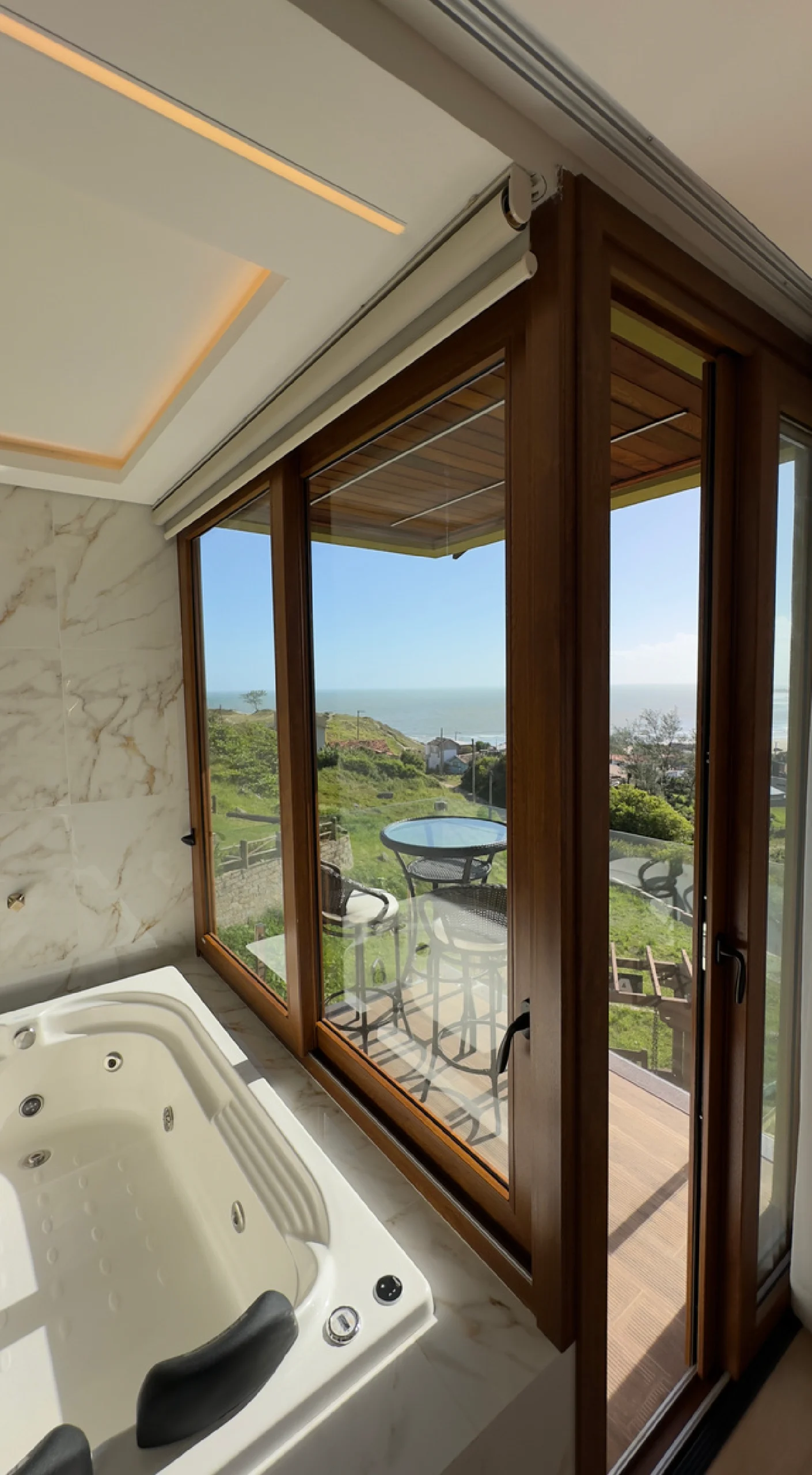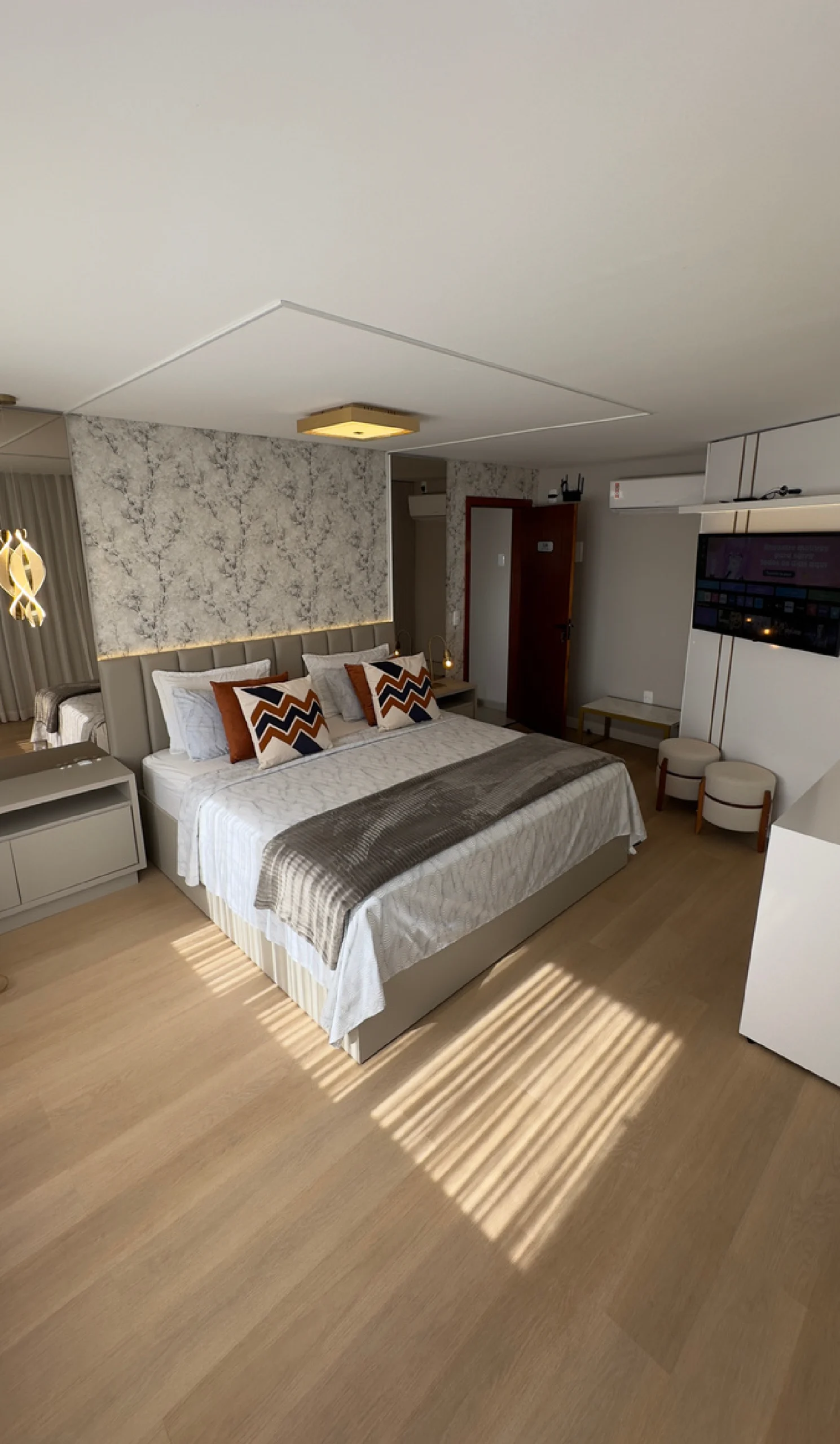 Com hidromassagem, cama King Size, varanda frente ao mar, cortinas automáticas e todo o luxo que um pôr do sol merece. É mais do que uma suíte. É um cenário de memórias eternas.